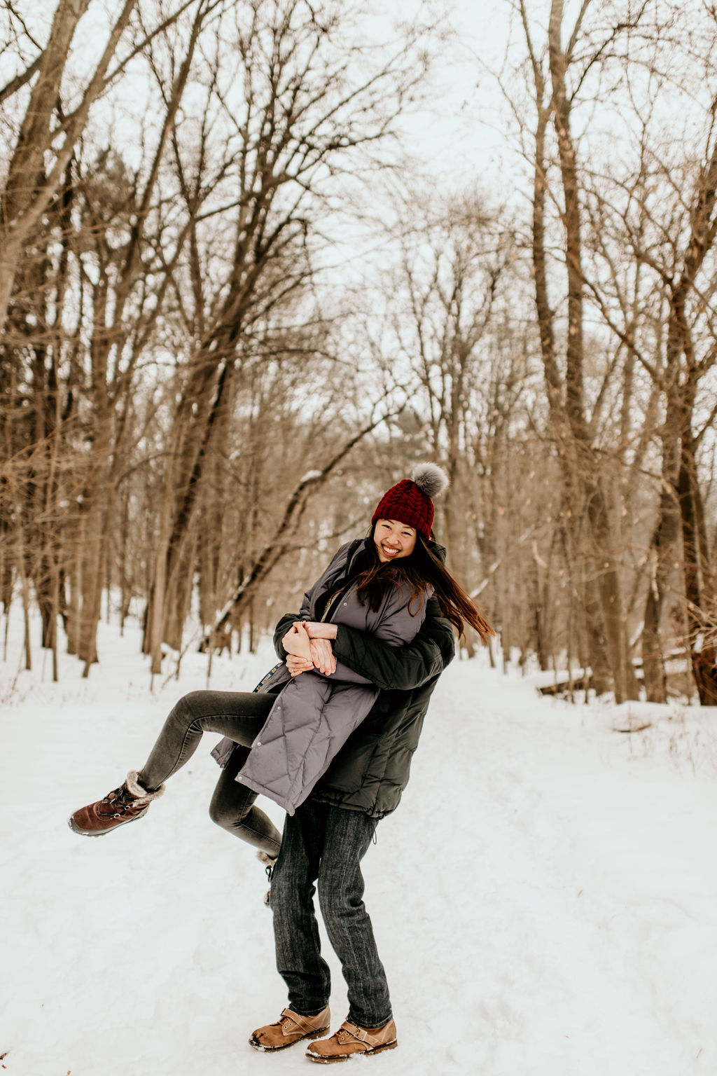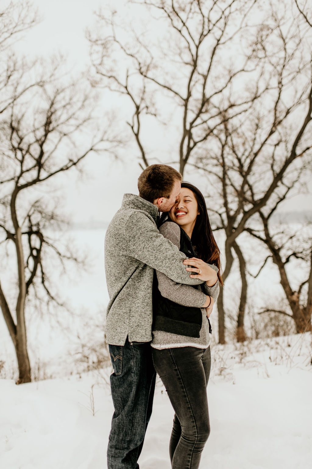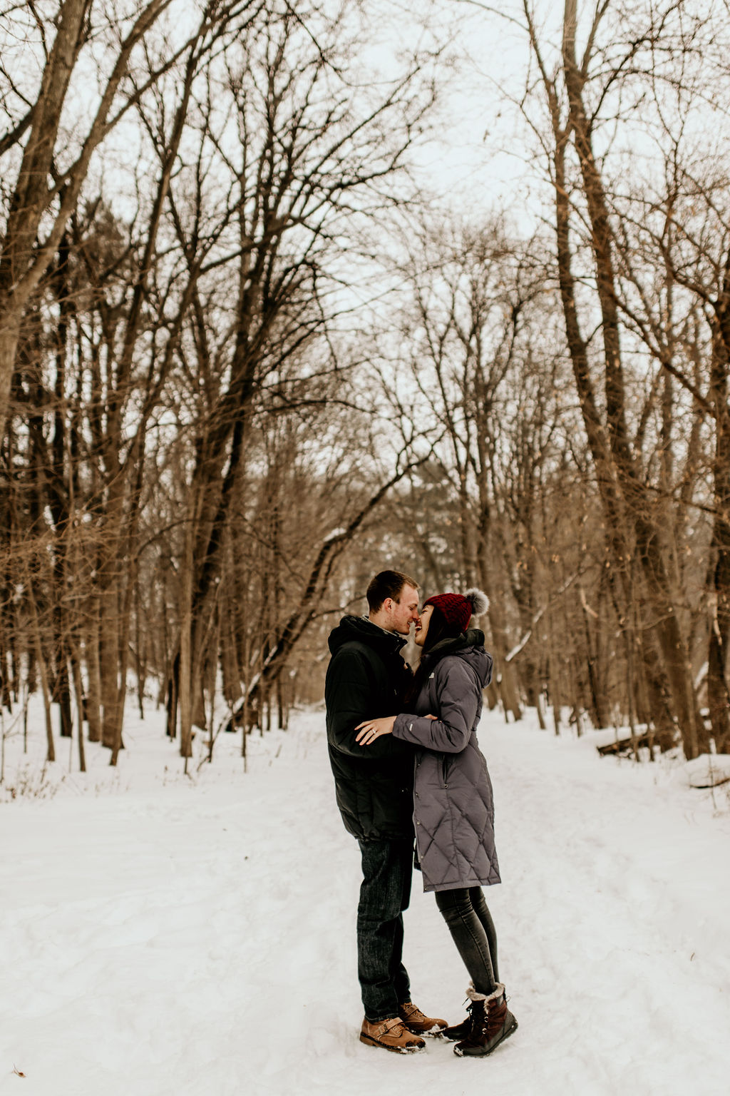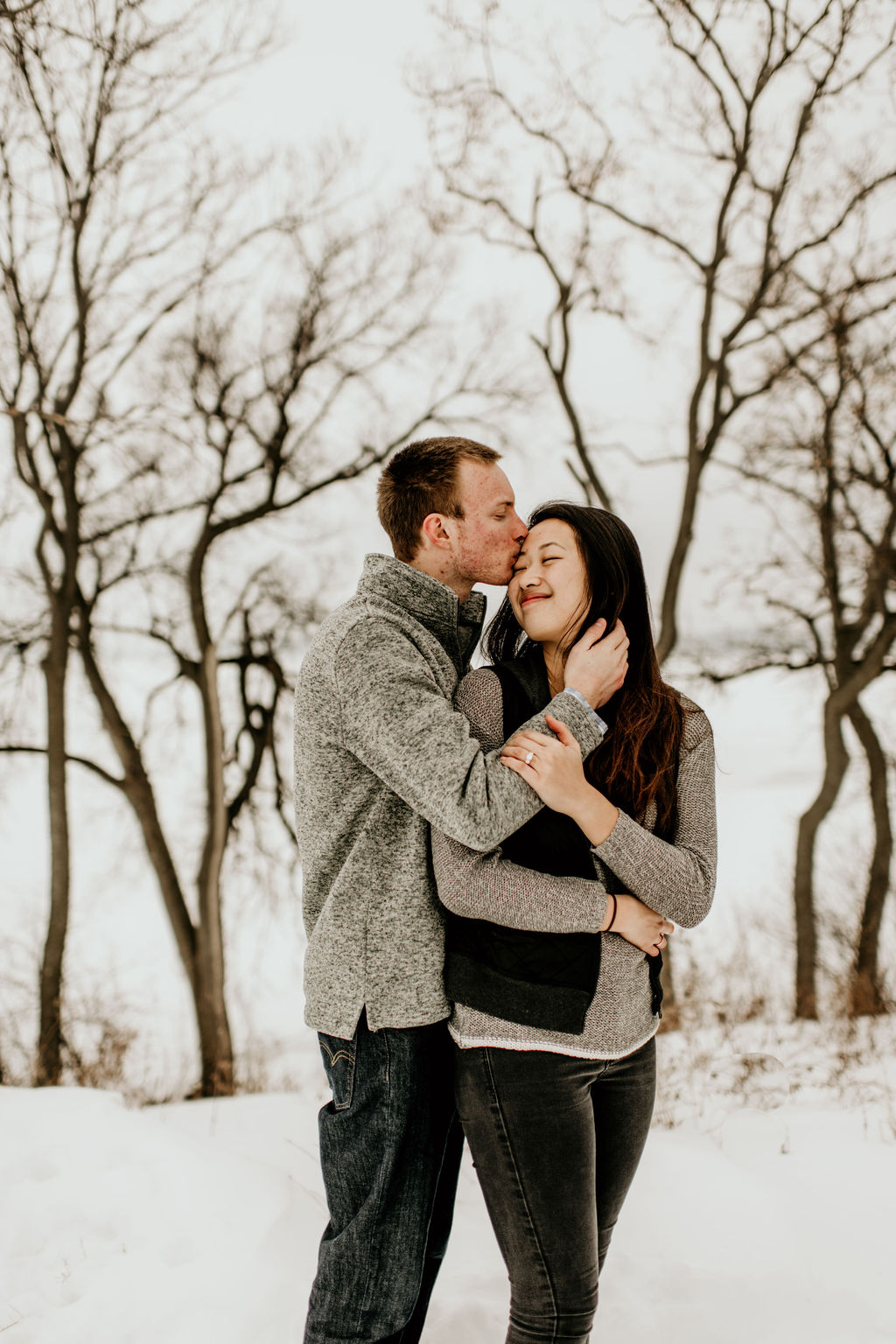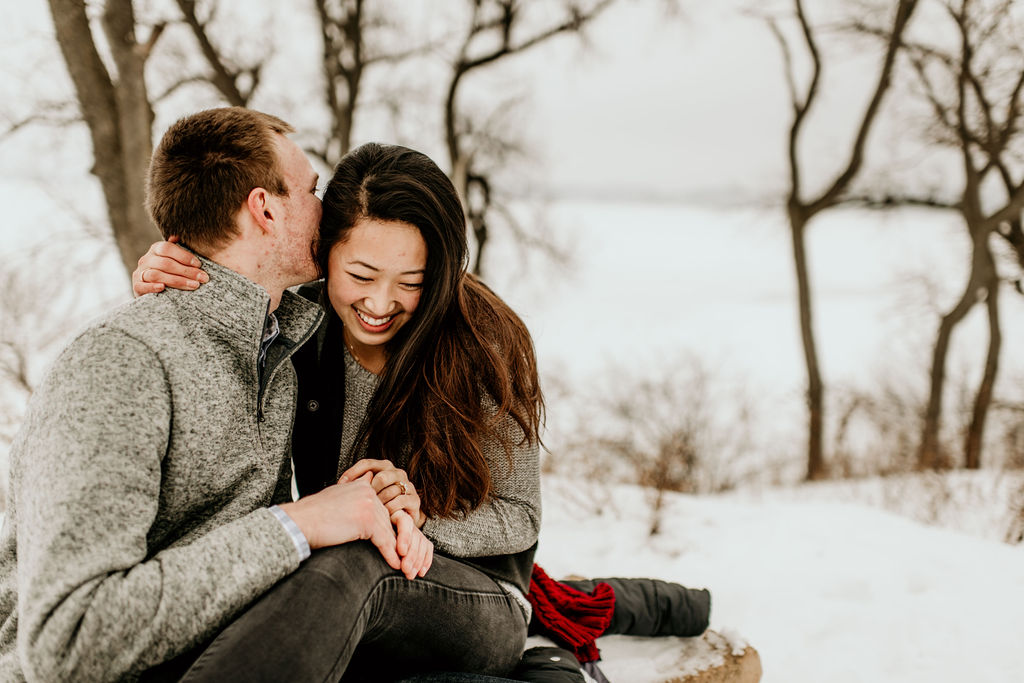 We ended our session at a nearby forrest right off of the lake, and it was snowy and romantic, and every bit of perfect.