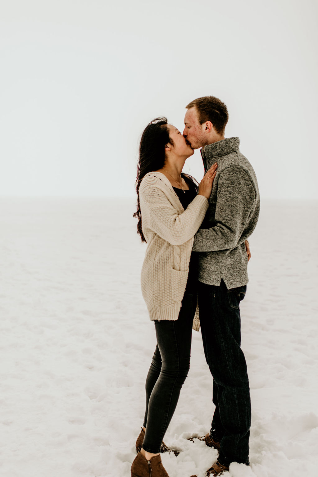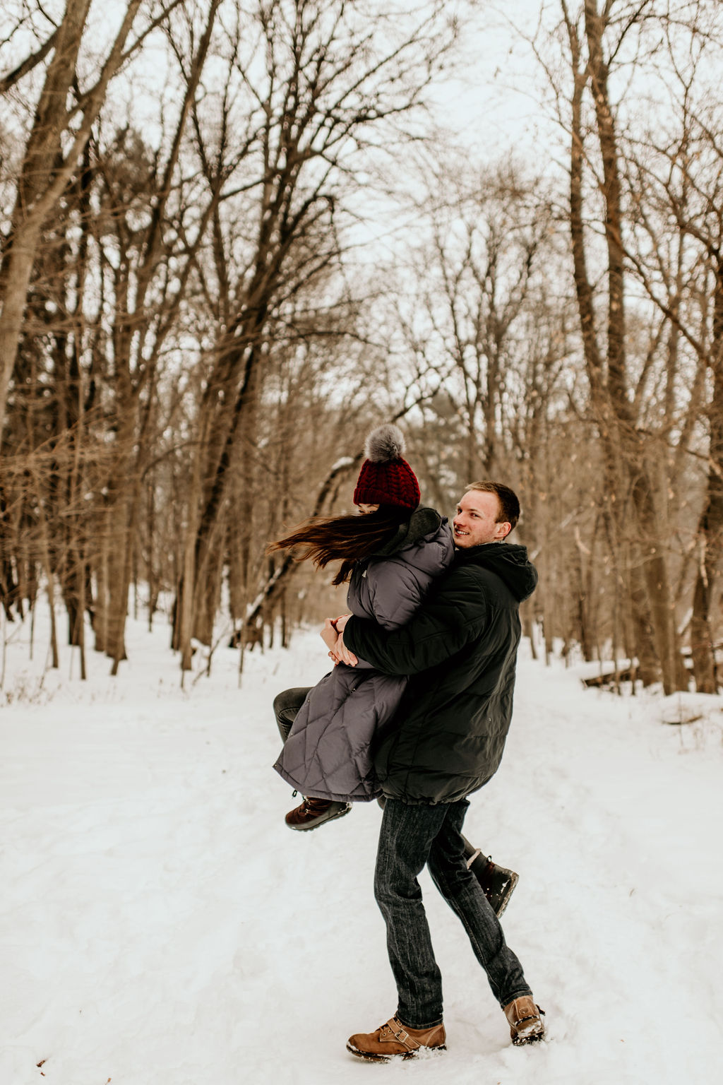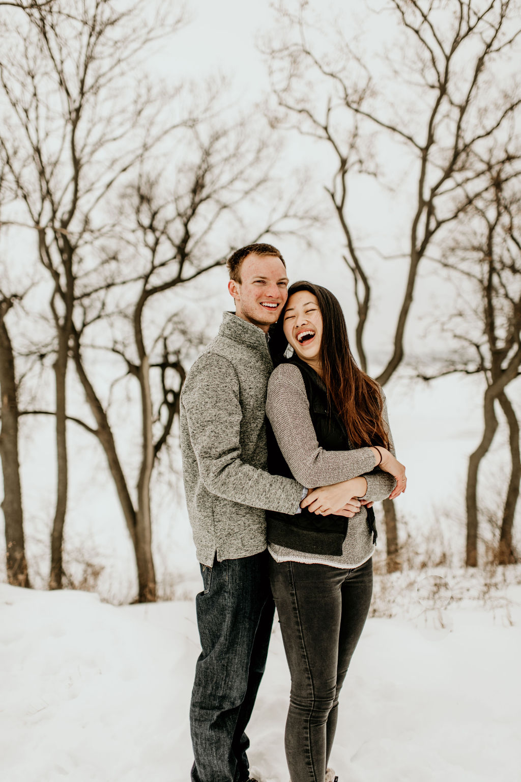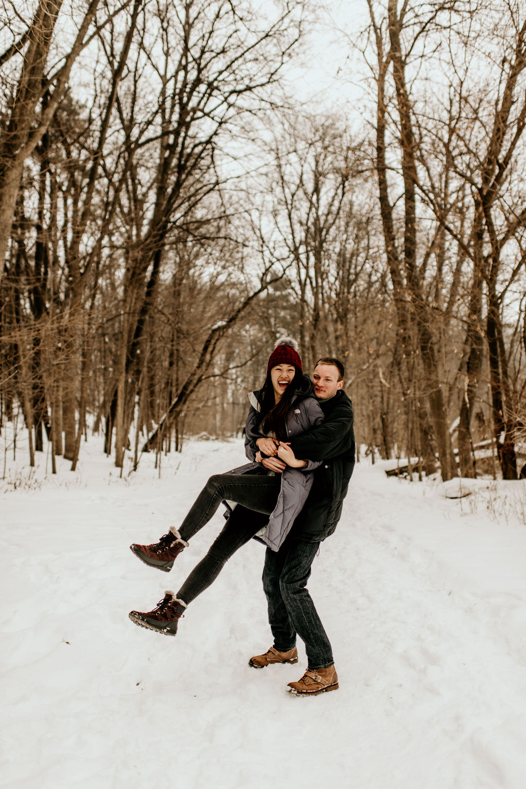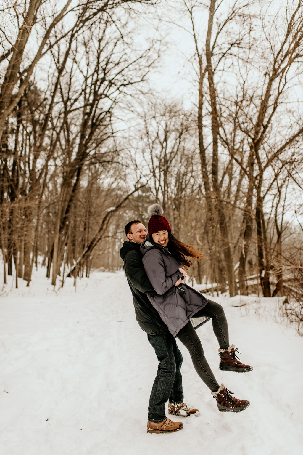 We ended our session at a nearby forrest right off of the lake, and it was snowy and romantic, and every bit of perfect.