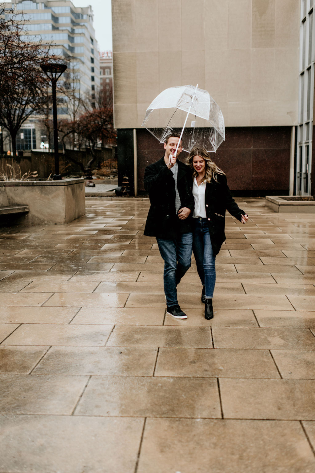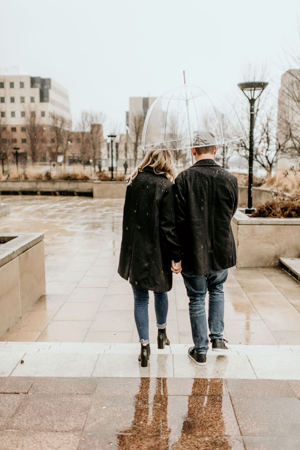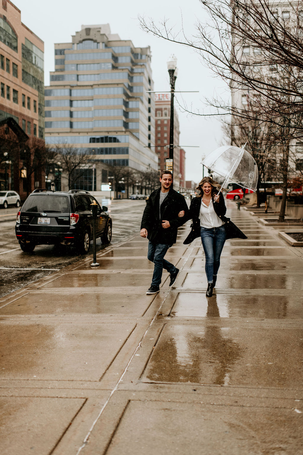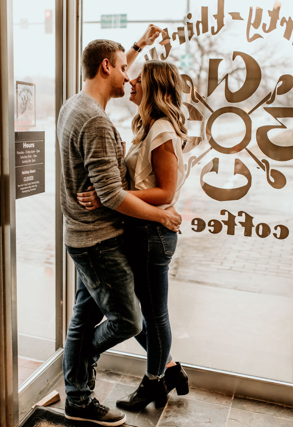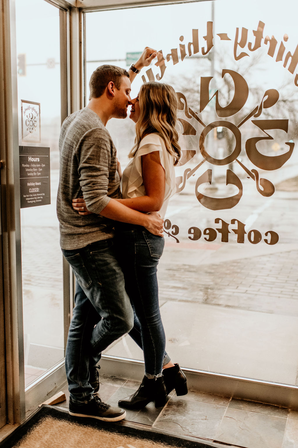 We adventured to a local coffee shop, Thirty Thirty Coffee for the first half of their session, and finished outside of the Peoria Illinois Courthouse, with a clear umbrella in hand, and love surrounding, despite the gloomy weather.