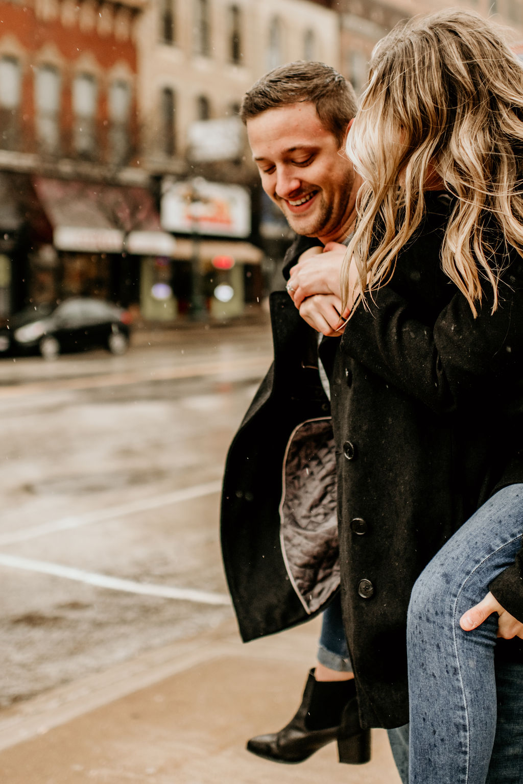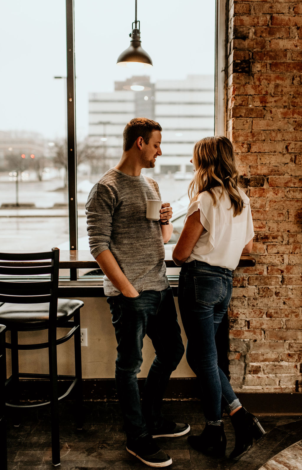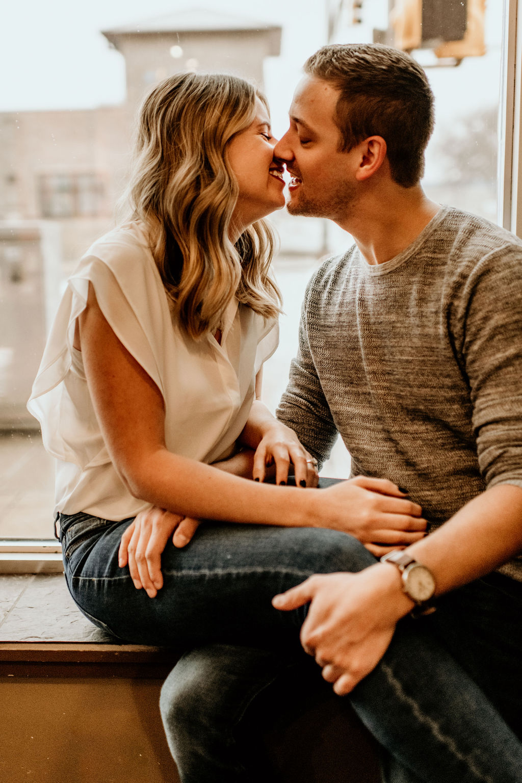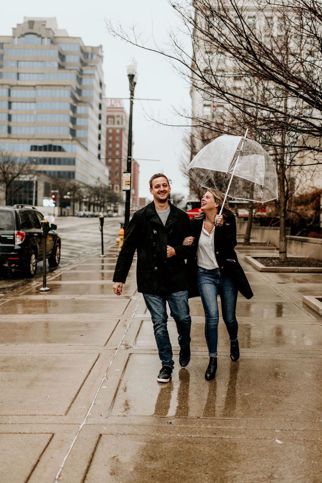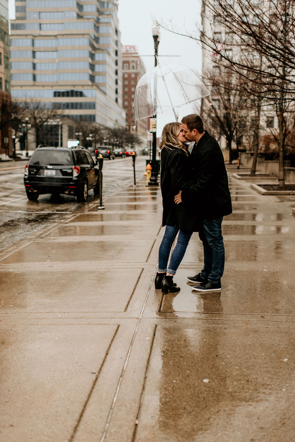 We adventured to a local coffee shop, Thirty Thirty Coffee for the first half of their session, and finished outside of the Peoria Illinois Courthouse, with a clear umbrella in hand, and love surrounding, despite the gloomy weather.