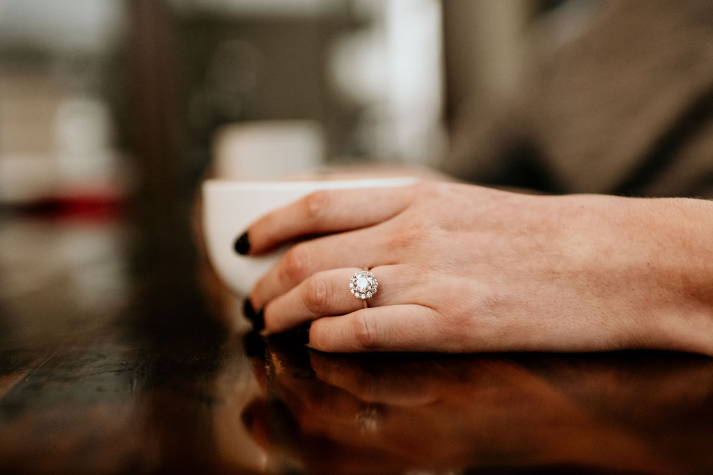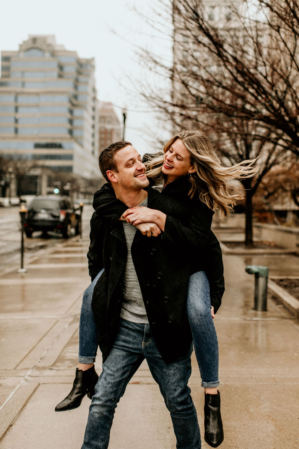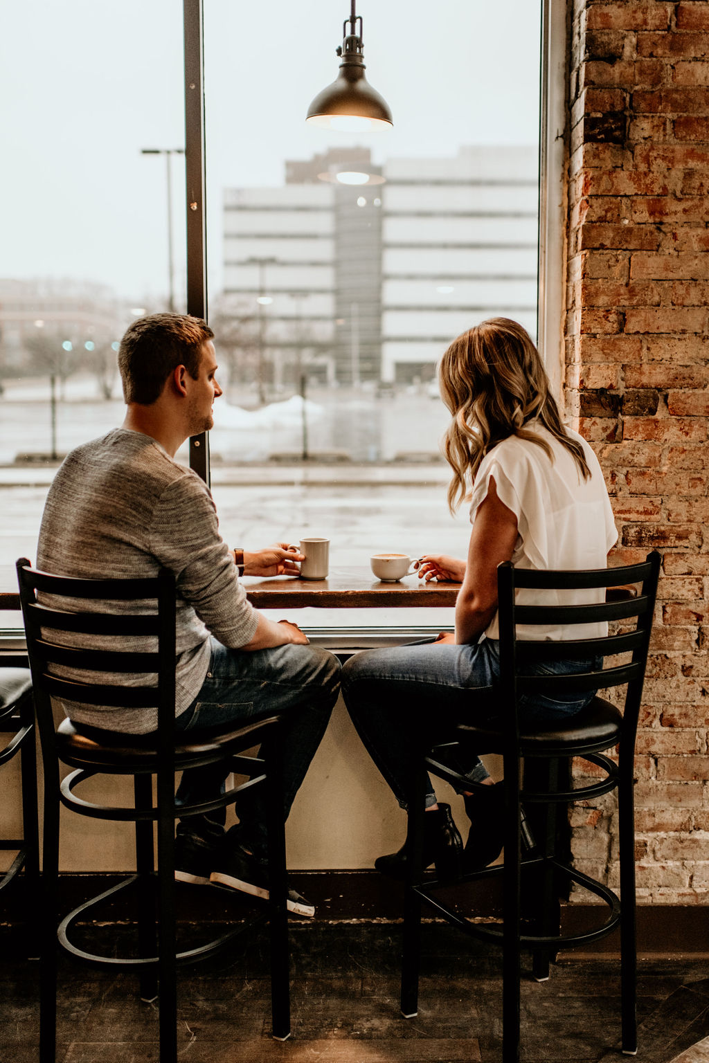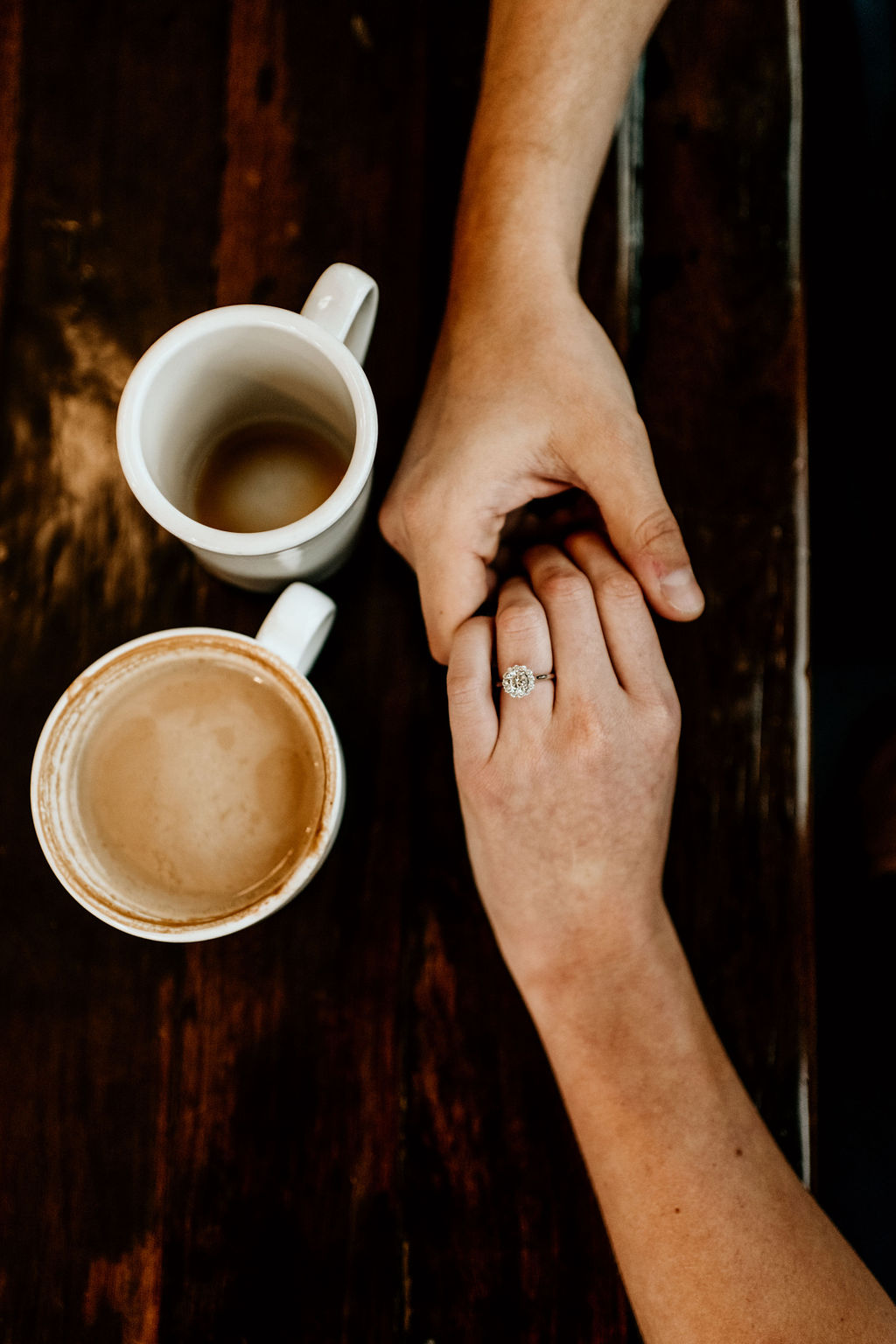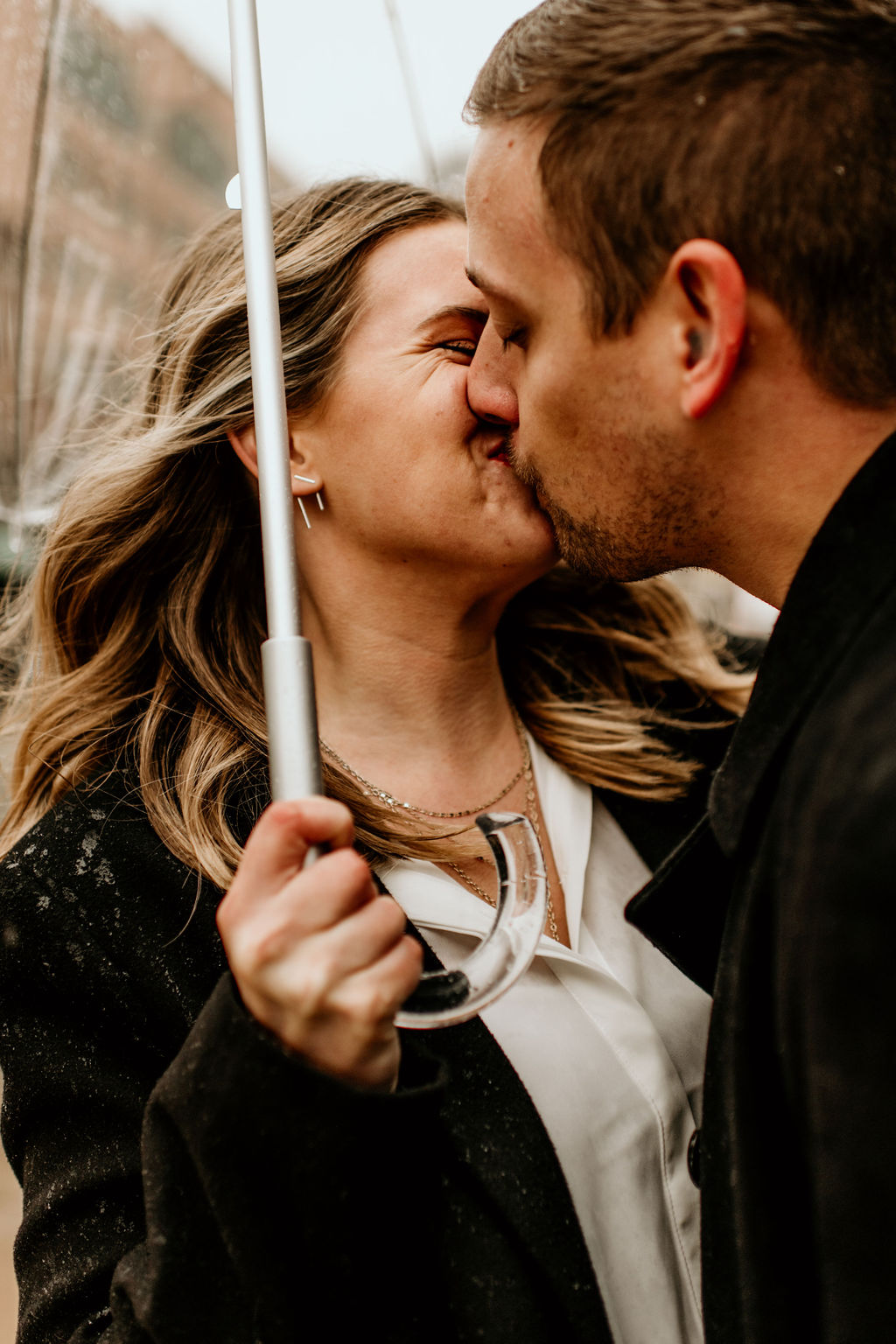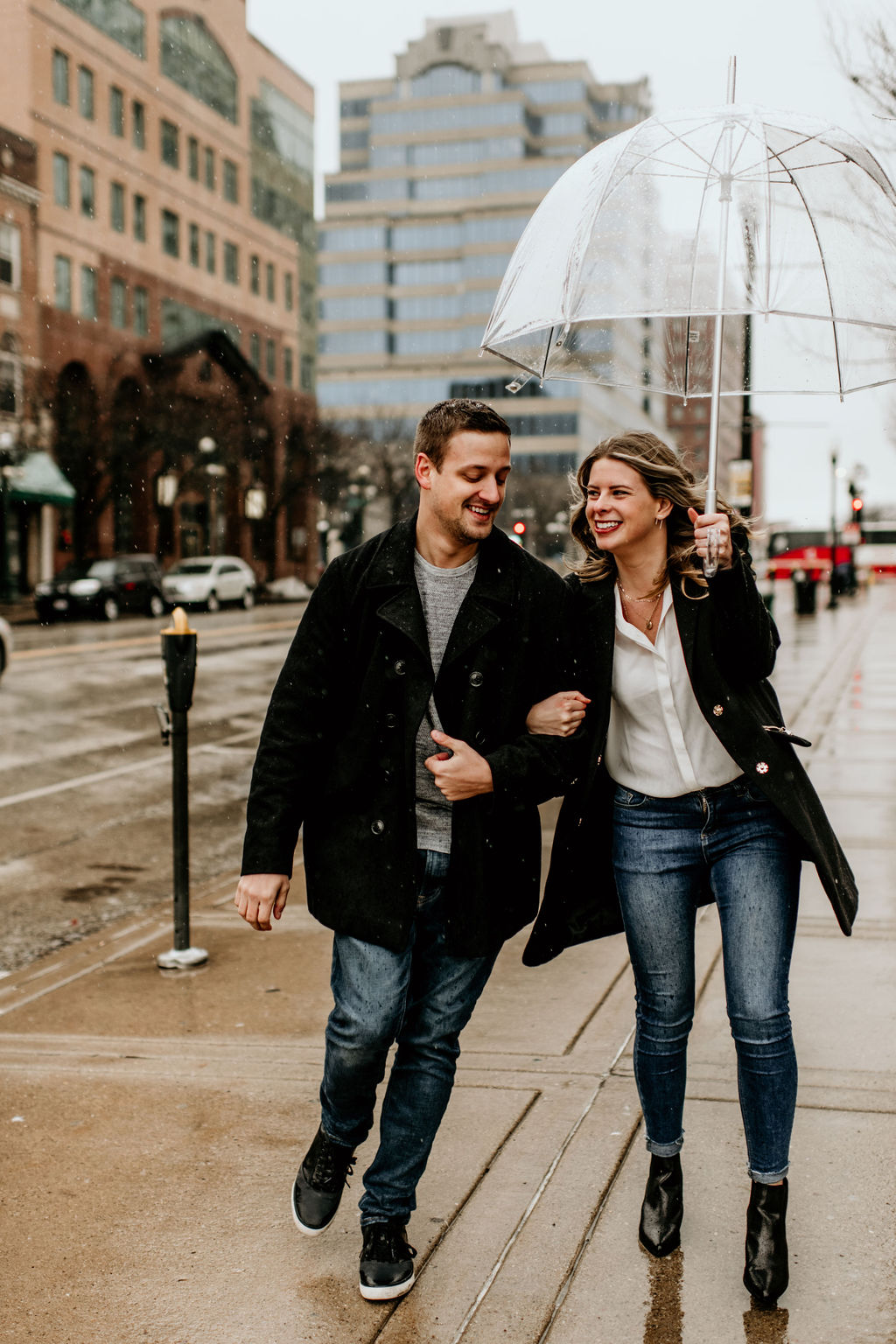 We adventured to a local coffee shop, Thirty Thirty Coffee for the first half of their session, and finished outside of the Peoria Illinois Courthouse, with a clear umbrella in hand, and love surrounding, despite the gloomy weather.